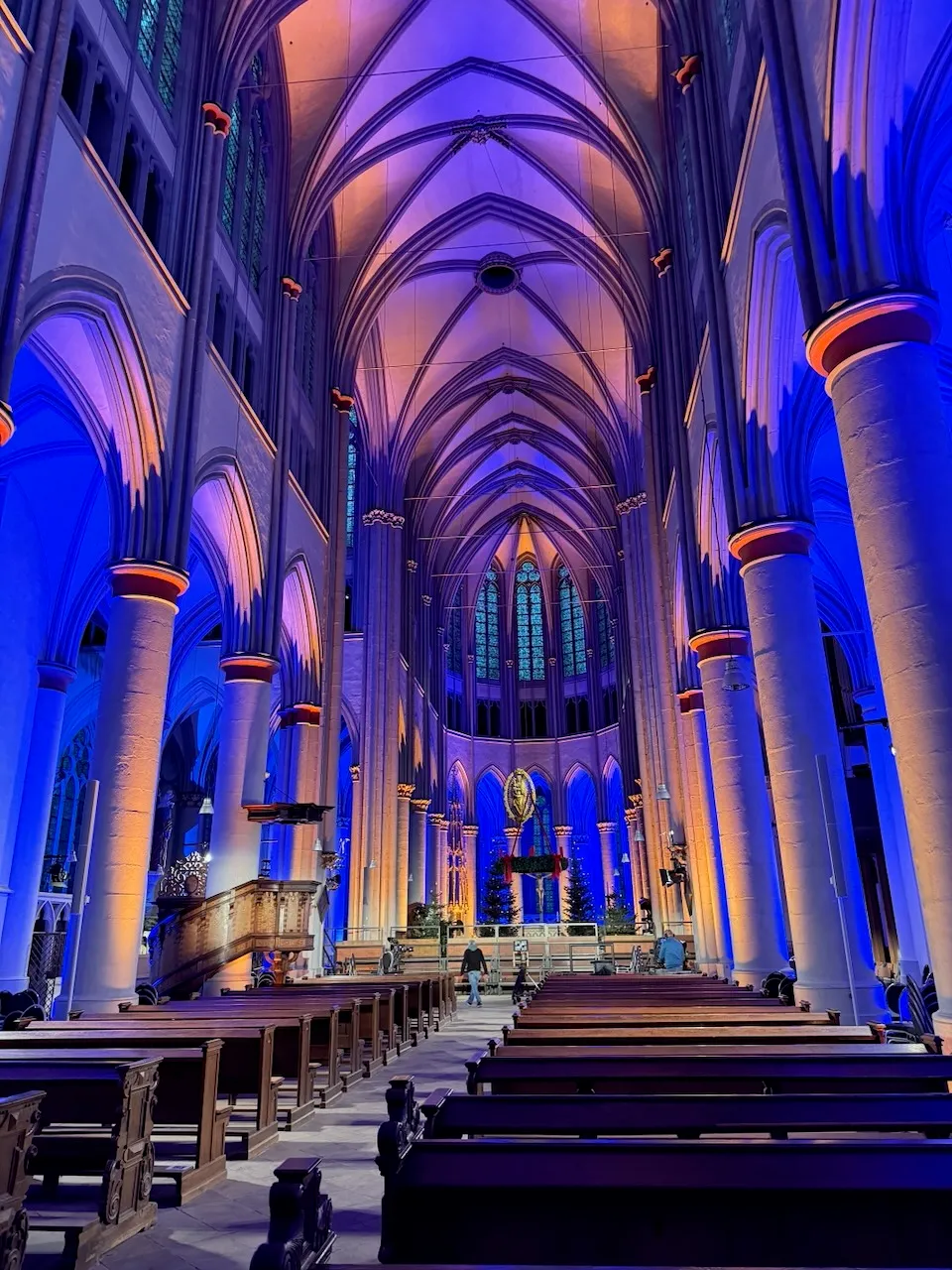 Television-compatible lighting solution in Altenberg Cathedral — precisely implemented with respect for architecture and liturgy.