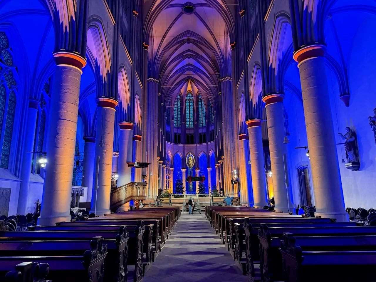 Altenberg Cathedral is one of the most important religious buildings in North Rhine-Westphalia and has particular technical and organizational requirements as a venue. ARD Christvesper, which was recorded live in tape by WDR on 23.12.2025, had to implement a high-quality lighting solution suitable for television in a listed church interior — while maintaining the highest standards of safety, restraint and respect for architecture.